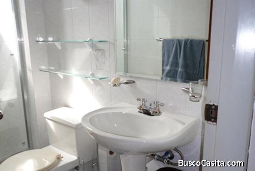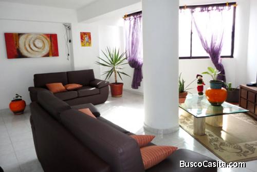 Este inmueble se encuentra completamente equipado con camas matrimoniales en hierro forjado con colchón ortopédico, baños equipados con puertas de vidrio templado y accesorios, aires acondicionados en 2 habitaciones y área sala comedor, televisor de plasma 42 pulgadas, juego de muebles de estar en piel sintética color chocolate, cocina empotrada con nevera, área de lavadero con lavadora y secadora, sistema interno hidroneumático marca pedrollo y calentador de agua.