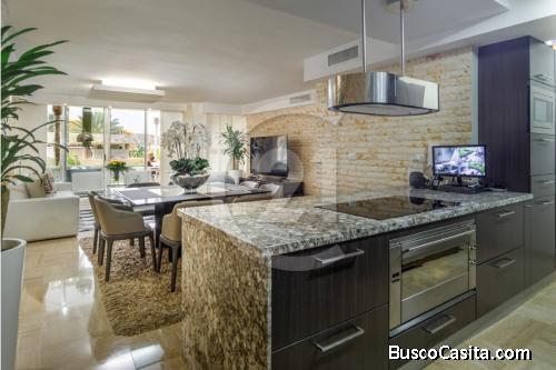 Lujoso y amplio apartamento en una planta baja de 135 Mtrs2, en el exclusivo Conjunto Residencial CARENERO YACHT CLUB, ubicado en el cotizado Complejo Turístico el Morro, acabados de primera, tres (3) Habitaciones la principal con baño, tres (3) baños con accesorios y piezas sanitarias de primera, pisos de mármol, paredes revestidas en hermosa coralina, amplia sala, comedor, cocina empotrada italiana de lujo, con tope, pantalla y mesón desayunador en granito, accesorios en acero inoxidable, impecable mantenimiento en todas las áreas, vista panorámica con amplios ventanales lo que permite una fresca y agradable ventilación natural, terraza con amplio jardín de uso exclusivo del apartamento salida al parque y a la piscina, línea telefónica, internet ABA, televisión por cable, puertas de seguridad, dos (2) puestos de estacionamiento, amplio maletero (5 Mtrs2), portón eléctrico. El Conjunto cuenta con áreas sociales de primera, áreas verdes y caminerías, parque infantil, dos (2) piscinas, muelle, hermosos acabados, vigilancia privada, circuito de cámaras, muro perimetral, rejas de seguridad y cerco eléctrico. Reflectores de seguridad, monitoreo por cámaras de circuito cerrado en todas las áreas del edificio. Vigilancia privada, planta eléctrica por cada módulo (operativas 100%) que dan energía a todo el apartamento y las áreas comunes.