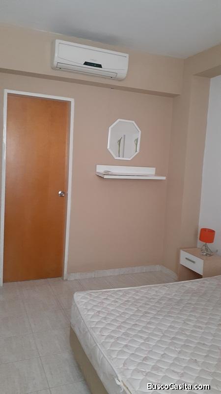 Campana, Estufa con Horno, Nevera, horno microondas, cafetera , licuadora, Calentador, Lavadora secadora, 2 aires acondicionados split, juego de recibo con 2 sofás, mesas, juego de comedor, desayunador con dos sillas, cama matrimonial.