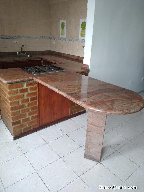 - Cocina en mampostería con tope de granito y mesón tipo desayunador