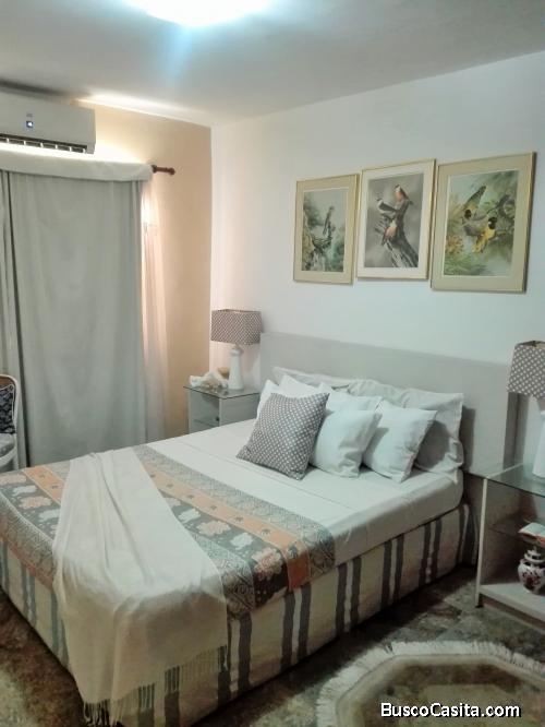 El apartamento esta acondicionado totalmente, para ser habitado, tiene una hermosa área de cocina, moderna y equipada, con tope de granito. Queda con la cocina de cuatro (04) hornillas empotrada y horno, también queda instalado el horno de microondas. El area de faena incluye lavadora y batea. Pisos de porcelana, closets en las tres (03) habitaciones, la habitación principal queda con el Aire Acondicionado Split de 12.000 btu, tanque cilíndrico instalado con bomba incluida. Cada baño queda con los muebles instalados, griferia moderna.