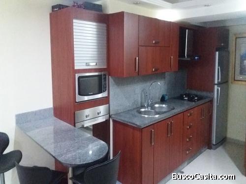 SKYGROUP Vende apartamento equipado en Residencias Vista al Parque. Edif de poca data muy bien ubicado ya que le permite el rápido acceso a la Autopista o Avenida, cerca de Centro Comercial, comercios. En piso alto, con vista al frente , cocina empotrada y equipada con tope de granito ( Incluye sistema de filtro de agua Osmosis Inversa), pisos porcelanato, pared grafeada, habitación principal con pequeño vestier, estudio ( que puede habilitar como segunda habitación) cada una con sus persianas de lujo, puerta de vidrio y piezas de primera en baño. Queda con línea telefónica, internet satelital, direct tv e intercable.