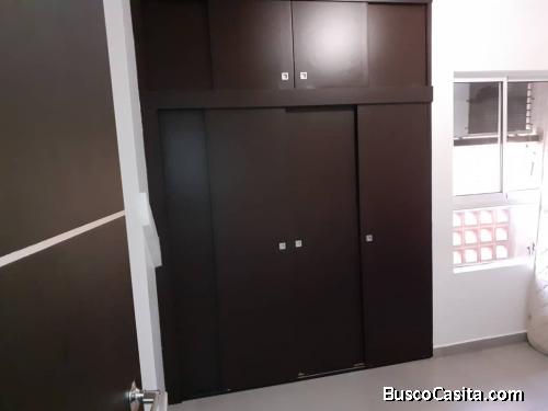 Sky Group Vende y equipado distribuido en 2 habitaciones con closet, 2 baños remodelados con pareduches, paredes con texturizados, cocina empotrada con tope de granito, 1 puesto de estacionamiento. El conjunto cuenta con áreas sociales como piscina, parrilleras, caney, caminerias, cancha deportiva, vigilancia las 24horas.
