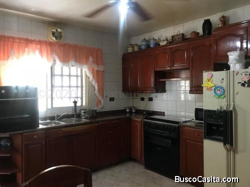 En venta amplia y cómoda vivienda de 350 mts de terreno y construcción ,consta de 5 habitaciones y 3 baños ,piso de cerámica ,techo de platabanda, portón electrico,10.000 lts de agua en tanques aéreos ,estacionamiento para 3 vehículos y linea cantv e internet.