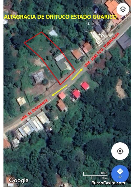 Ubicación: ALTAGRACIA DE ORITUCO DEL ESTADO GUÁRICO. ENTRADA POR LA URBANIZACIÓN EL DIAMANTE, SUBIENDO A LA URBANIZACIÓN JOSÉ FRANCISCO TORREALBA (CAMORUCO) A 250 METRO DEL CDI DE LA URBANIZACIÓN EL DIAMANTE.