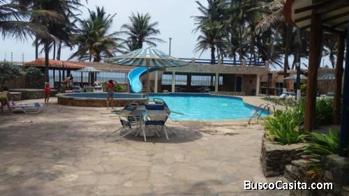 FOCUS INMUEBLES VENDE apartamento con vista al mar, ubicado en exclusivo conjunto vacacional con condominio muy activo y diligente. El inmueble esta amoblado y posee aire acondicionado integral de 36 mil btu, dispone de una cómoda distribución amplio salón comedor, cocina y agradable balcón con vista a la playa, con una habitación, sala de baño. Capacidad para 6 personas aproximadamente. El conjunto cuenta con piscina, caney, parrileras y parque infantil. Dos puestos de estacionamiento. circuito cerrado y vigilancia las 24horas.