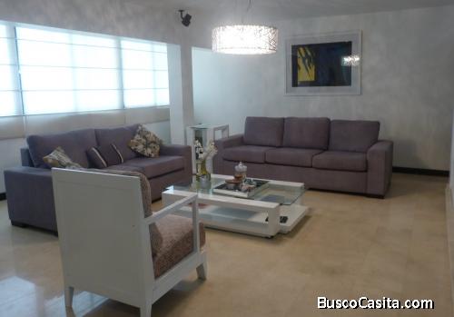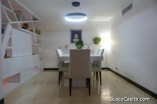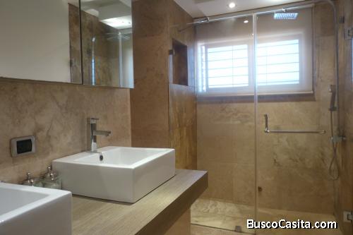 El apartamento ofrece pisos de Mármol, elegantes, prácticos y modernos closets. Cocina estilo italiana. Área social integrada comedor, sala, bar y sala sanitaria de visita. Área de lavandería, habitación y baño de servicio. Aire central de 3 y 5 toneladas. Totalmente equipado y amoblado.