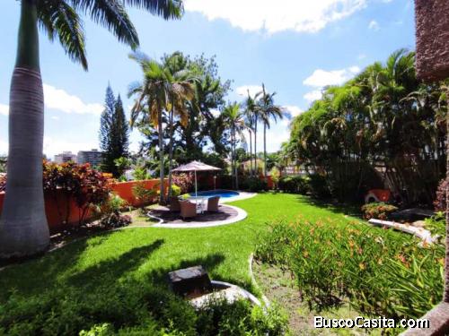 La casa cuenta con una extensa parcela 1135,23M2 y un área de construcción de 670M2 distribuidos en 2 emblemáticos niveles en una arquitectura que deja ver y disfrutar de sus áreas verdes, y el contraste de materiales de construcción como la madera, pisos en caico, paredes revestidas y sus diversos ambientes hacen de ella una propuesta única.