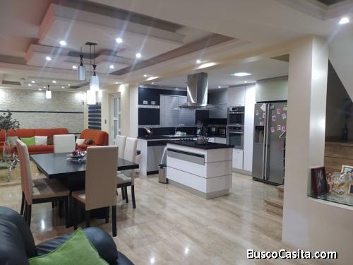 Planta Baja: Conformada por una Hermosa Cocina la cual se encuentra empotrada con tope de granito, y equipada con tope eléctrico, campana, horno eléctrico, microondas, lava vajillas, La fachada se encuentra revestida en coralina, posee un amplio salón - comedor, tanto el piso como la escalera son de mármol, los techos son trabajados en dry-wall, y las paredes tienen detalles en espacato, también posee un pequeño patio y un área para lavandero, Un ½ Baño para visita, adicionalmente tiene un Tanque subterráneo de 12.000Lts, tiene Un sótano y tres Puestos de estacionamiento (2 de ellos techados).