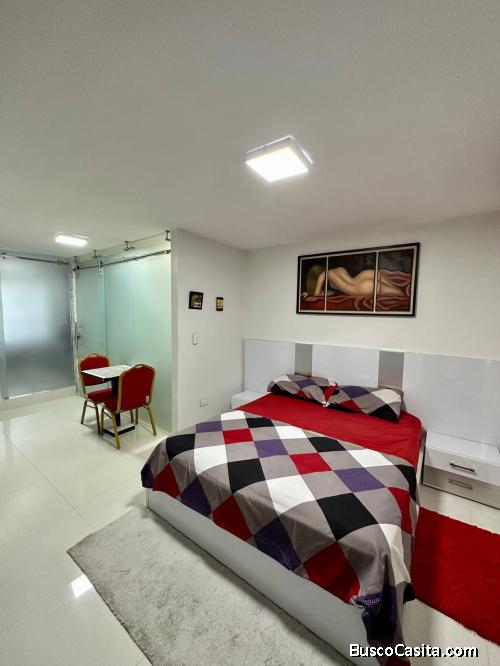 Cocina equipada (nevera, tope a gas, campana y horno microondas,)