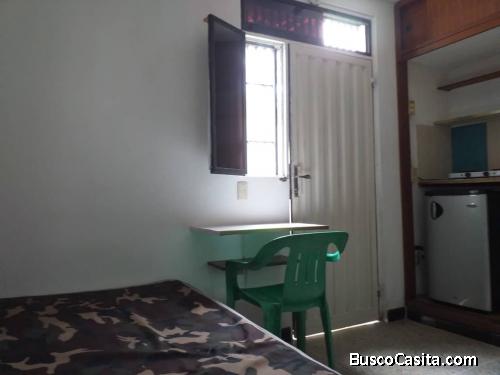 *El inmueble se dota de: Cama+colchón+mesa-repisa; Alacena-maletero; Closet; 1 Mesa adosada a pared para estudio o trabajo; Cuarto exclusivo de Baño con Ducha Termoeléctrica, Wc. y lavamanos con gabinete y 1 extracto-ventilador eléctrico; área para la disposición de licuadora, cafetera eléctrica o similar, con Cocina eléctrica de 2 hornillas; Área para Nevera Ejecutiva con nevera y 2_Cupos de Internet inalámbrico Wifi.