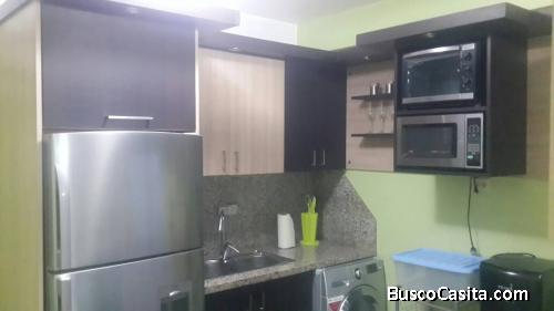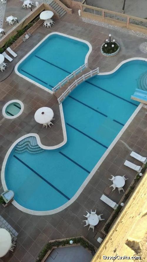 El apartamento de 112 m2 consta de cerámica resistente y decorativa, paredes revestida en tablilla, posee amoblado y de colores claros que le da un ambiente amplio y acogedor para el descanso y relajación, cocina empotrada con electrodomésticos de primera en acero inoxidable y topes de granito, posee litera resistente y colchones cómodos, posse 3 baños con elementos de lujo como pesetas, pareduches, es de dos habitaciones amplias con 2 puestos de estacionamiento techados, posee dos unidades de aire acondicionado de 5 toneladas