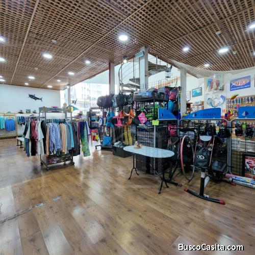 Área de tienda de ropa, con 2 vestíbulos.