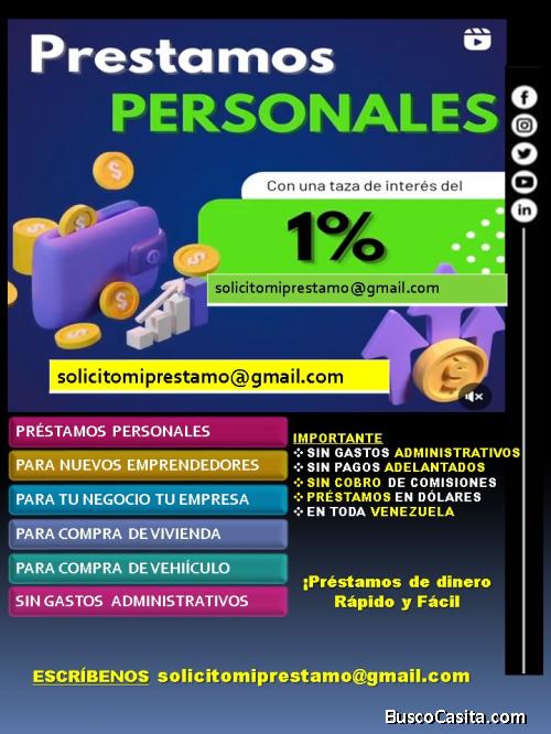 Comunícate con nosotros hoy mismo al correo electrónico solicitomiprestamogmail para obtener más información sobre nuestros préstamos personales en dólares y comienza el viaje hacia un futuro financiero más estable y próspero.