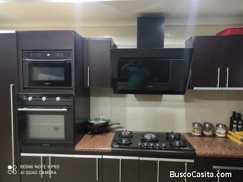 Cocina totalmente nueva remodelada con todos sus artefactos electricos nuevos, paredes estucadas marmolizadas entre la cocina y la sala, techo de yeso con luces indirectas y plasmas d luz d igual forma una pared 3D elaborada el yeso con luces indirectas d diferentes colores,