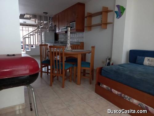 cómoda casa Dúplex de 90 mts en el exclusivo Conjunto Residencial LA CALETA en Lechería, ubicación privilegiada, de mayor auge Turístico y Residencial de la zona, a escasos metros del Centro Comercial Plaza Mayor. Distribución: Piso 1: SALA, COCINA (empotrada con tope de granito), COMEDOR, PATIO TRASERO Y MUELLE. Piso 2: (2) Habitaciones con (1) baño, aire acondicionado en todas las áreas, garaje para (1) vehículo mas estacionamientos de visitantes, El conjunto cuenta con salón de fiestas, piscina, jardines, parque infantil, vigilancia privada las 24 horas. Queda totalmente amoblada