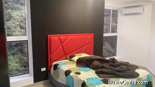 Cuenta con 1 Maletero y 2 puestos de estacionamientos techados, 2 HABITACIONES, 2 BAÑOS, Sala - Comedor (Detalles en Coralina y techos en drywall con luces LED, incluye Aire Acondicionado tipo Spit), Cocina empotrada y equipada con mostrador en granito, Área de faena, Habitación principal con vestier y baño privado con piezas sanitarias modernas, paredes revestidas con porcelanato, Pareduche y ventanas de piso a techo. Relajante vista hacia la montana desde la habitación. Incluye Aire Acondicionado Split), Habitación secundaria con clóset. (Incluye Aire Acondicionado split), Baño de visita remodelado con piezas sanitarias y pareduche.