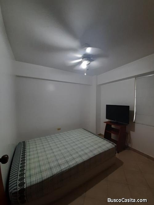 Apartamento en Mirador Country Amoblado y equipado, ubicado en piso alto, de 72 mtrs2 distribuidos en 2 habitaciones, ambas con closet, 2 baños con puertas de vidrio templado, cocina empotrada, sala-comedor, piso de cerámica, cuenta con 1 maletero y 2 puesto de estacionamiento. Queda con: Cocina, campana, 3 aires acondicionados, lavadora y secadora. El conjunto cuenta con lobby, 2 ascensores, planta eléctrica para áreas comunes, vigilancia privada las 24 horas. Parque y salón de fiesta. FOA-1174