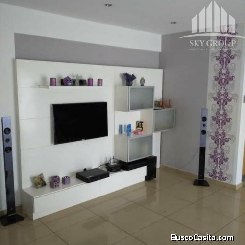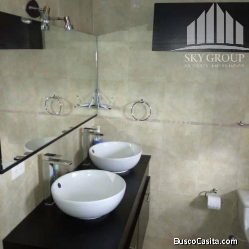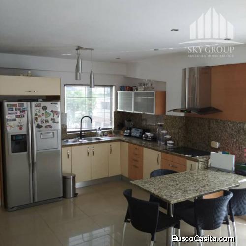 217 mtrs2, 4 Habitaciones, 3 Baños y 2 Puestos de estacionamiento. La principal con vestier, salas de baño, estudio, cocina empotrada eléctrica, horno, campana, nevera, microondas, 6 aires acondicionados, lavadora y secadora,
