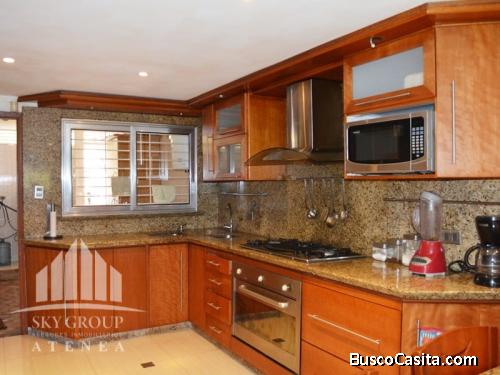 Consta de 749 mts2, 5 habitaciones, 3 con vestier, 5 baños, 1 habitación de servicio con baño, Cocina Moderna y Equipada (horno, campana, estufa, nevera, vinera y lava vajilla automático), Estudio, Sala, Comedor, Estar, Piso de Porcelanato, Techos de Draywall en toda la casa, Escalera de mármol, Aire acondicionado central, Área de faena, Maletero, Área social con caney, Piscina, jardines y 2 baños, 6 puestos de estacionamiento (2 techados), Tanque subterráneo con su hidroneumático y filtro, Fachada de tablilla. Cuenta con servicio de cable, Internet y línea telefónica con intercable, Posee circuito cerrado de cámaras, cerco eléctrico, Calle cerrada. ATC-318