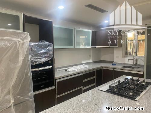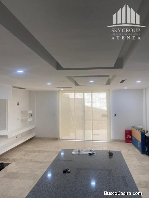 120 mtrs2, 3 Habitaciones con Closets, 2 baños modernos, 1 baño para visitas, 2 Puestos de estacionamiento techados, Cocina equipada a estrenar con tope de granito, Pisos y escalera en mármol, Área de Lavadero, Área del Patio decorada en mármol y coralina y Techo de Drywall y luces Led directa e indirecta. Sin Problemas de Agua. Incluye: Cocina a gas Directo , Nevera, microondas, horno, campana todo nuevo a estrenar, Aire acondicionado integral de 3 toneladas y 3 split, 2 tanques de Agua de 580L con bomba hidrocompacto y Lavadora y secadora. ATTH-165
