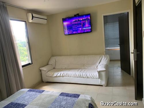 Apartamento de 95m2 ubicado en Res. Centro Norte, Paseo Cabriales. Remodelado de 2 habitaciones, la principal con vestier, 2 baños, cocina empotrada con tope de granito. Quedan ventiladores de techo, calentador. 2 puestos de estacionamiento, bonita vista a la ciudad, ubicado en piso alto. Agua constante. Excelente ubicación con fácil acceso a la autopista.