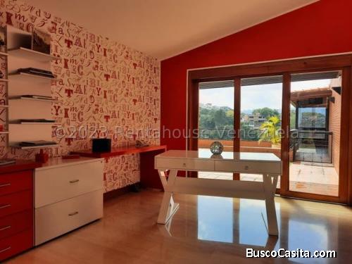 Espectacular casa en magnifica urbanización cerrada y vigilacia 247. Totalmente remodelada con acabados de lujo: Mármol, hermosa cocina de espacios abiertos. Habitaciones con baño y vestier en la principal, AC en todas las areas, Amplias terrazas y areas de esparcimiento. Magnifica vista de Caracas. Estacionamiento de visitantes.