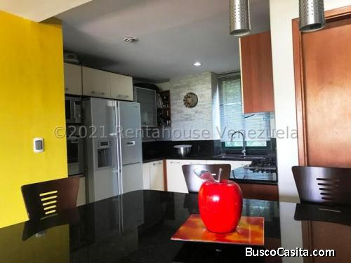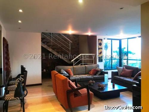 Privilegiada ubicación, urb exclusiva, tranquila, segura, cerrada y vigilada. Edf. con vigilancia y agradables áreas comunes, muy buen mantenimiento y acabado de ladrillo en fachadas. Apto dúplex con excelente iluminación y ventilación natural, 1er nivel área social y servicio, 2do nivel área íntima, maletero, 2 puestos estacionamiento techados uno detrás del otro y espectacular vista al Ávila.