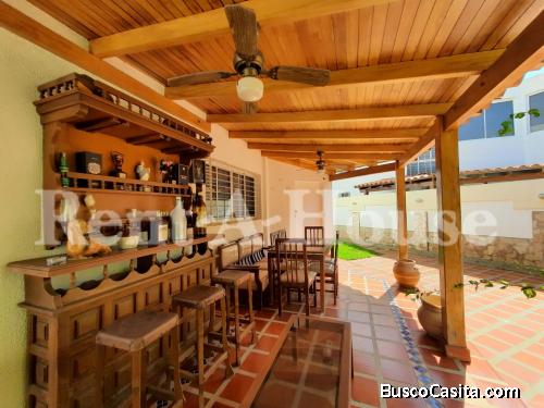 La residencia queda en esquina con una extensión de 428 metros de terreno y 320 metros de construcción donde la majestuosidad de este imponente inmueble te sorprenderá desde que abres por primera vez sus puertas, respiraras la frescura de un hogar cálido, al iniciar su recorrido nos encontramos el hall de entrada y un estilo de decoración arquitectónico distinto al común denominador ya que entre lo lujoso de un piso de mármol en sus áreas sociales, desnivel entre su sala y comedor, detalles en yeso, luz indirectas, iluminado con hermosas lámparas de cristal tipo cascada, y una columna de piedra, suma elegancia a cada espacio ya que cada uno de sus muebles y puertas están elaborados con la técnica de madera envejecida, al llegar a la cocina nos encontramos enmarcados con un estilo colonial sin salirnos del diseño, tope de granito, con su desayunador, gabinetes de cocina y una despensa con el mismo acabado de madera envejecida, se apila otro espacio para compartir en familia cómo lo es un family room, integrando un medio baño y tres (03) tres closet de madera, donde en uno de ellos se guarda el cuarto de máquinas de los aires acondicionados, posee cuarto de servicio, con sala sanitaria privada y cuarto de lavandería. En sus exteriores nos encontramos con una terraza trasera muy amplia que adquiere jardín, parrillera, integrando un horno tipo pizzero, bar y cuenta con 5 lockers de material rustico cada uno con sus puertas, donde uno de ellos se conserva el hidroneumatico con filtro de purificación del agua que abastece toda la residencia y una bomba de riego, contando con un tanque subterraneo cuya capacidad es de 12.000 litros, calentador de agua y terminando de detallar la planta baja posee estacionamiento techado para ocho (08) vehículos y también tiene un loker para almacenamiento.