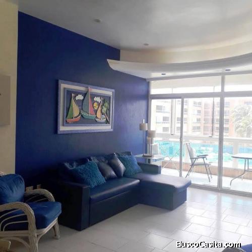 Se vende bellos apartamento amoblado, El inmueble tiene 84 mts2, es de  2 habitaciones 2 baños 2 puestos estacionamiento, habitaciones principal con cama matrimonial, habitación auxiliar con juego de 4 camas tipo literas, y closets. En la sala sofá cama, la cocina moderna con tope de granito, con tope a gas, horno, nevera y utensilios varios .