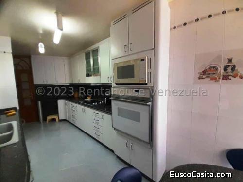 Excelente oportunidad de comprar este Imponente PH duplex, en una de las zonas mas exclusivas de la ciudad, cuenta con una ubicacion magistral, en esquina y con una vista a nuestro majestuoso Avila. Esta Joya cuenta en la planta baja con un Hall de entrada, recibo, baño auxiliar, salon, comedor, cocina-pantry, lavandero, habitacion y baño de servicio, pasillo de distribucion, habitacion con baño interno, habitacion principal con vestier y baño incorporado.En la planta alta hay un salon con balcon, Terraza descubierta con parrillera, baño auxiliar,habitacion con baño y vestier, patio interior, baño auxiliar, cocina y bar-kichenette. 4 puestos de estacionamiento, y de visitantes, vigilancia privada 24hs, salon de fiesta lujoso, areas verdes. Este PentHouse viene con pisos de marmol en las areas sociales, madera en las hab. de planta baja, ceramica en la cocina y baños, el resto porcelanato. Puertas con marcos de madera y hojas maciza, son de aluminio y materiales esmerilado en las duchas, metal y vidrio en la de acceso a la terraza, la principal con sistema de proteccion, baños con piezas sanitarias importadas, AA central, escaleras con pasamanos de madera, parrillera con campana extractora, mueble en mamposteria donde esta empotrado el fregadero, mueble bar con marmolina. Closets con puertas de madera en todas las habitaciones y vestier, la cocina equipada en su totalidad, linea telefonica, TV por cable en ambas plantas.PIDE TU CITA NO DEJES PASAR ESTA OPORTUNIDAD
