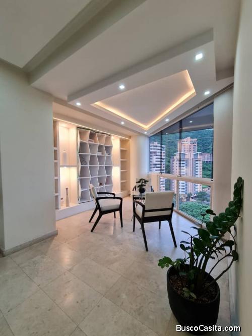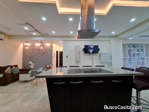 El apartamento dispone de 119m2 de construcción, cuenta con 3 hermosas y amplias habitaciones cada una con sus closets y aires Split, 2 salas de baño remodeladas con piezas sanitarias de lujo revestidos en mármol, tiene una Hermosa cocina en concepto abierto italiana completamente equipada , elegantes pisos en mármol color Champagne. Techos en Drywall con luces indirectas tipo LED, cuenta con un peculiar diseño de interiores en paredes decorativas en 3D, que le dan un toque único a la propiedad, posee Filtro de Osmosis inverso propio del apartamento además de contar con una hermosa vista al pulmón de la trigaleña debido a su estratégica ubicación, salón de recibo, área de comedor y área de faena.